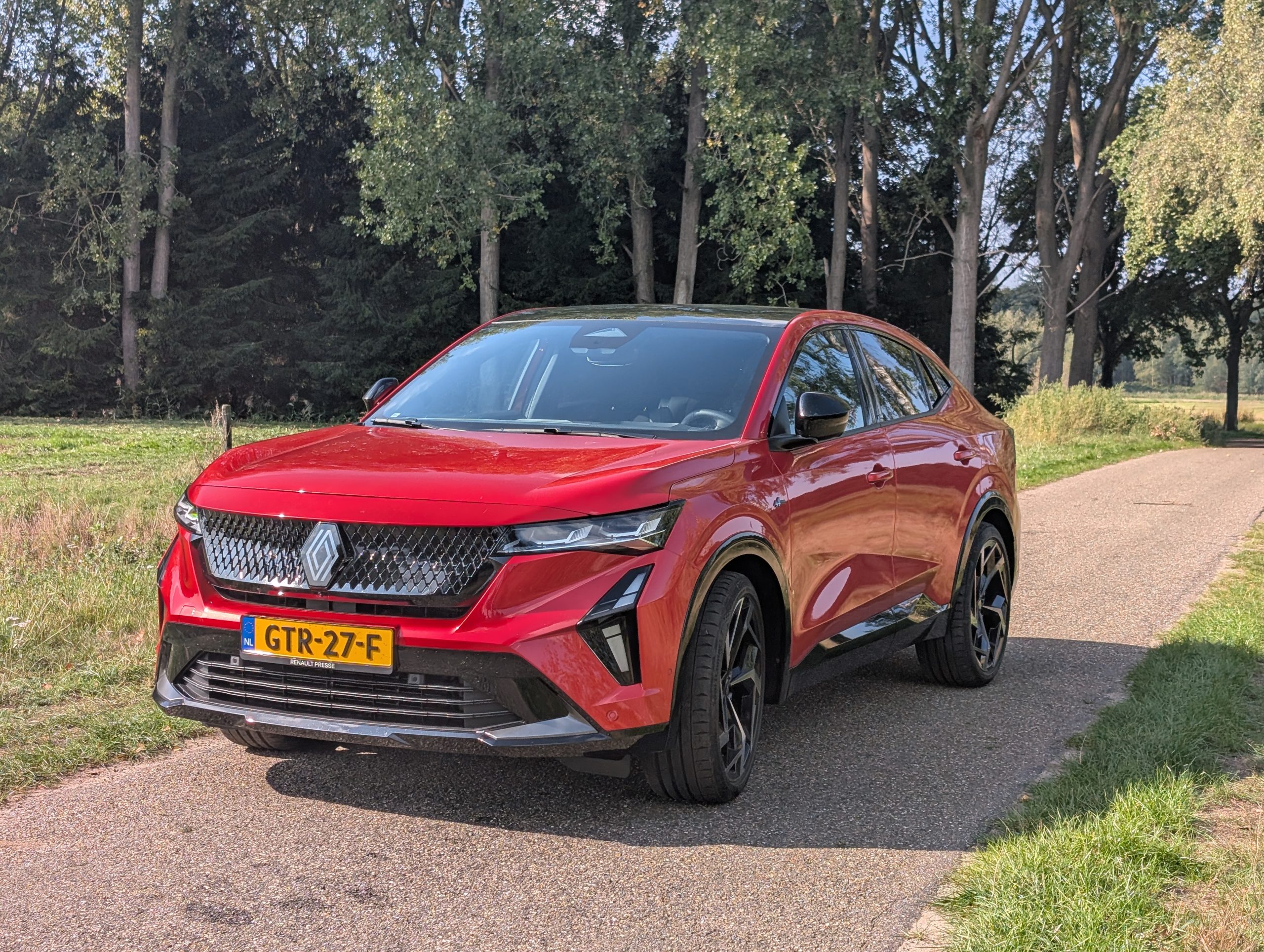 Als je onderweg bent merk je direct de voordelen van vierwielbesturing (“4Control Advanced”) en het sportonderstel in de Alpine-uitvoering: in bochten voelt de Rafale stabiel, zonder dat hij nerveus is. Bij lage snelheden helpt het stuurgedrag je richting soepel manoeuvreren; bij hogere snelheden biedt het vertrouwen. De demping is stevig, wat op golvende wegen de auto iets minder zacht maakt, maar de controlewinst is er zeker. Wel zijn er aandachtspunten: de automatische versnellingsbak in de non-plug-in hybrid versies maakt soms merkbare schakelmomenten, en boven de 100-120 km/u begint wind- en bandengeruis wat harder door te klinken. Maar dat zijn minor details…