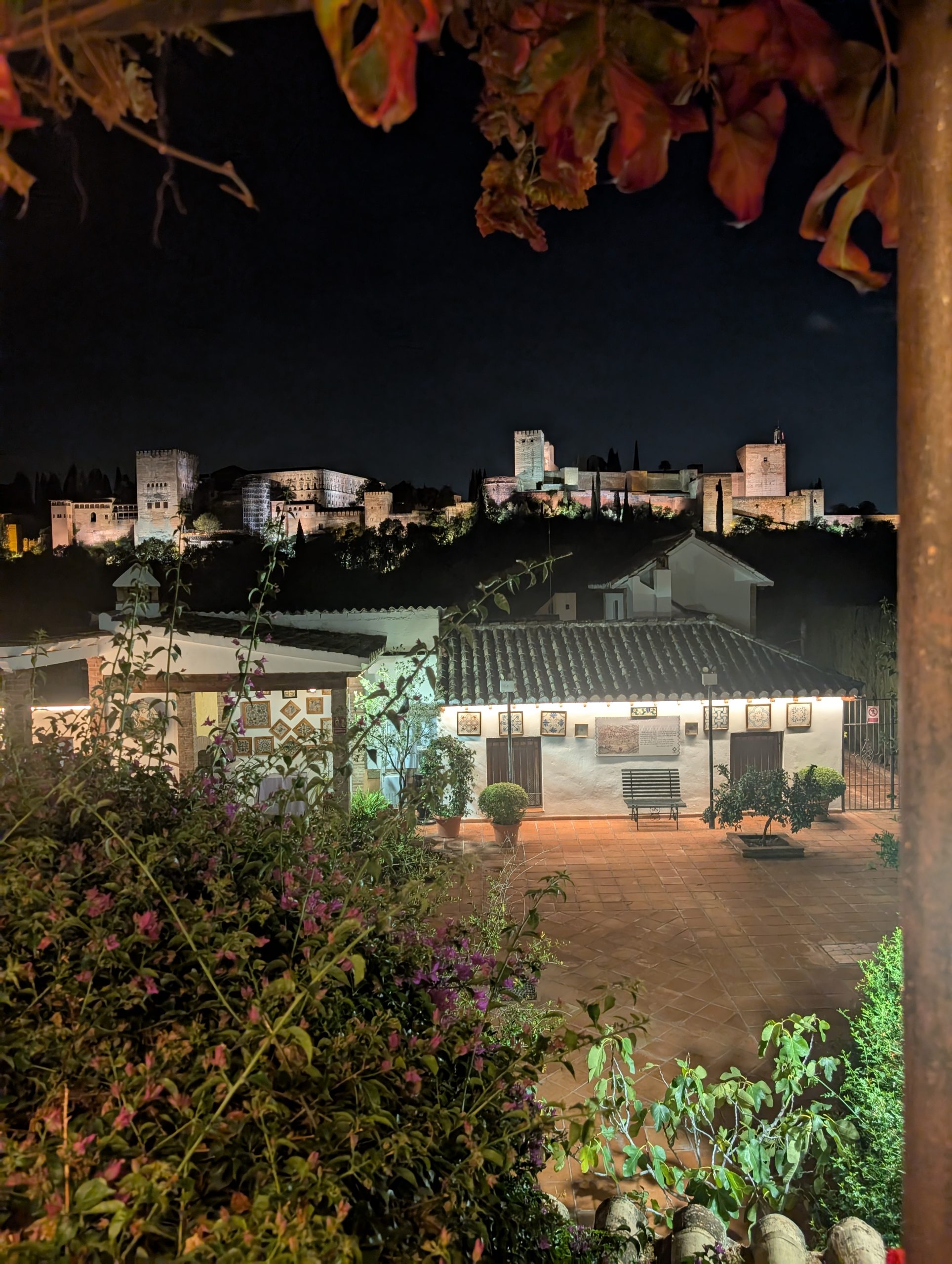 Na de tour keerden we terug naar het Alhambra Palace om vervolgens ‘s avonds te dineren in het beroemde Carmen de Aben Humeya. Het restaurant ligt op een heuvelrand en biedt een adembenemend uitzicht over Granada en specifiek Alhambra. Het bord voor me, met Andalusische specialiteiten, maakte de dag compleet.